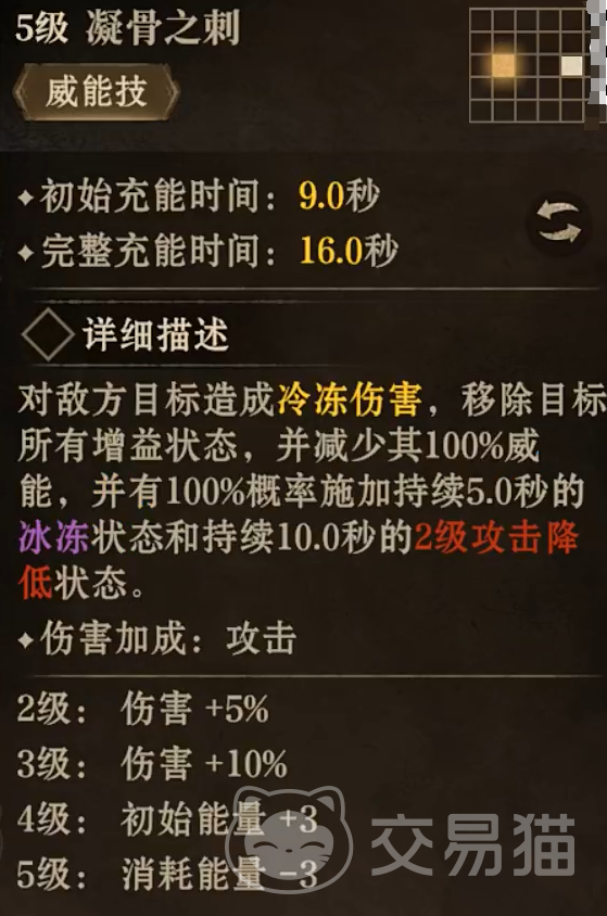 最后,瓦妮雅的威能技会对敌人形成冷冻伤害,移除该目标所有的增益状态,减少其100%的威能,并有100%几率施加5秒的冰冻和持续10秒的两级攻击降低状态。这一技能使得她在战场上能够有效地削弱敌人的战斗力,为团队争取到更多的胜利机会。
