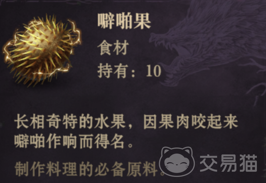 电光朗姆酒的制作配方是比较容易的,基本上都是容易获取的食物,这些食物是可以通过杂货铺直接购买的,而这个配方只需要两个食物,一个是噼啪果,这个果子本身就是受到雷击才能降生的果实,所以制作电光朗姆酒是基本食材之一。
