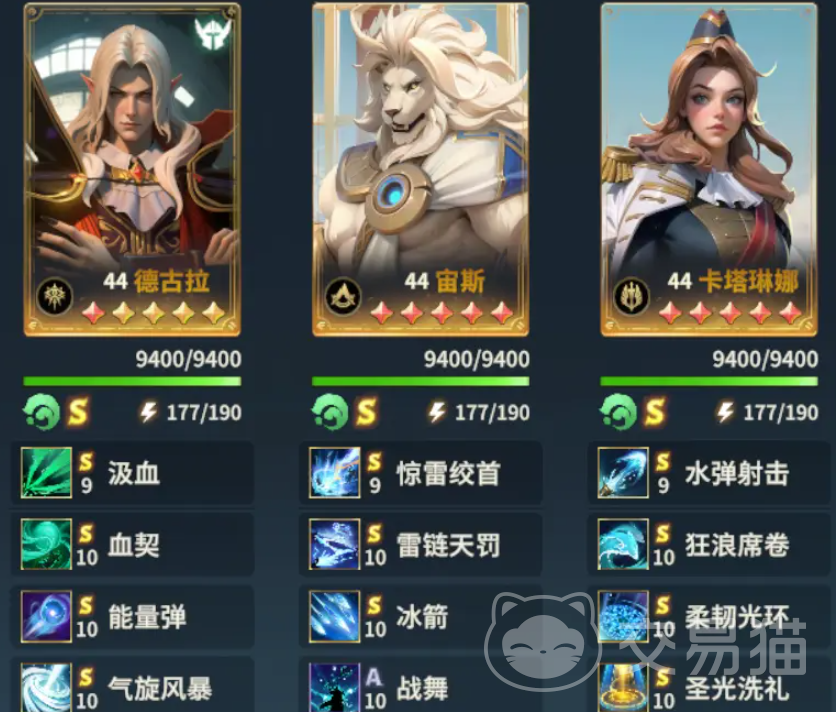 也可以组【宙斯凯蒂糖队】,宙斯:激流逆转 + 魔能牢笼;卡塔琳娜:气旋风暴 + 摄魂捕手;凯蒂糖:发令枪 + 欢乐颂。虽然缺少了特蕾莎的强力BUFF,宙斯在单核输出时会略显吃力,但有卡塔琳娜补位,携带气旋风暴稳定提供控制,同时用摄魂捕手增强续航。凯蒂糖则负责提高技能发动概率与净化,双重保障确保队伍整体稳定性,使宙斯的输出更持久。