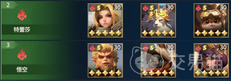 悟空是该队伍的核心角色,而他是签到就送的卡牌,每个玩家都能拥有,完全不用担心缺少英雄无法配置完整队伍的问题,拿破仑能提高队伍整体的暴击,在单卡当中的输出强度是非常高的,里昂能提供回血的效果,帮助队伍整体的续航效果提升,达到减少战损的目的。需要的核心技有圣痕,颂歌。比较好用的物理系输出队。