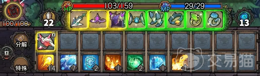 在卷轴选好了以后,接下来大家需要去收集材料合成药剂,推图过程中击杀敌人就有概率会掉落材料,这材料可以进行炼精,可以炼出药品。药品可以拥有很多种作用,不过大家需要的只有可以提升属性的属性药,其中以攻击药优先级最高,随后是魔力、生命值上限、魔力上限。大家只要能捡到可以做这些药的材料,那就直接做就可以了。在完成了这一步后,最后大家需要去选择神器,然后按照神器去构建流派。