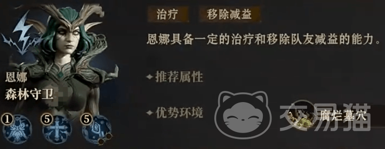 被动是在受到超过25%最大生命值伤害时,对自身进行一次治疗,该效果每10秒只会生效一次,她的战技是对一个队友施加10秒的受击恢复,让其在受伤时能补充血量,她的大招能对己方全体施加一个持续性恢复的效果,有10秒,并移除其中1个减益。