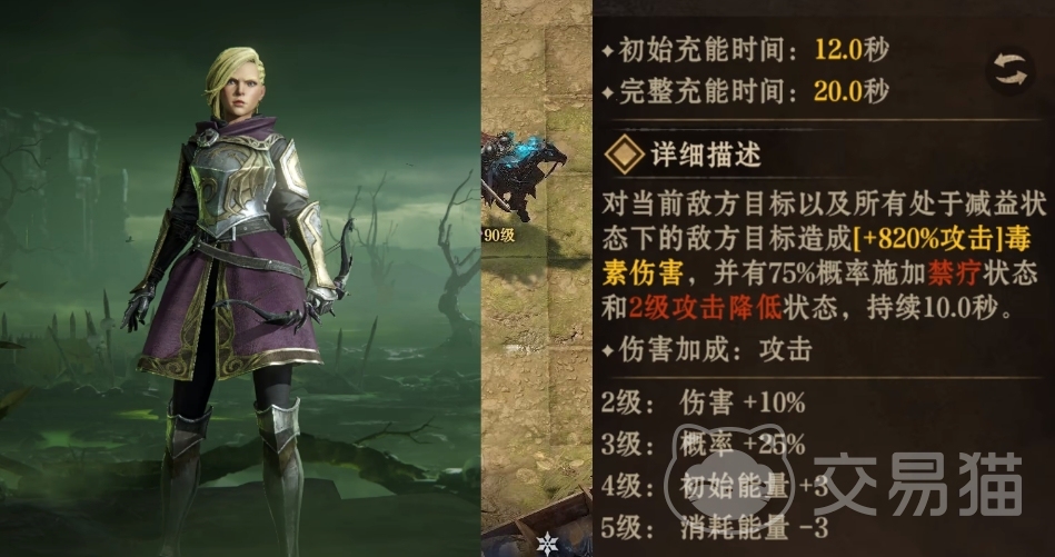 西格的最终大招能用一个技能造成820%的伤害值和毒伤害,对于有减益buff的目标带去同样的伤害效果。在叠了毒状况后还有概率禁疗和降低攻击能力,这个效果能维持10秒,这个数值基本上能够成功击杀一个角色卡牌。这个核心技能就算是在多目标场景下也能有奇效。