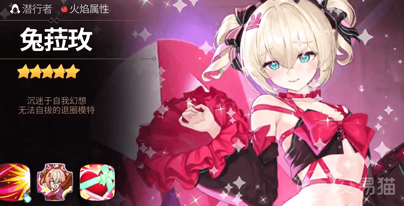 兔菈玫会在2月27日更新后登场,她属性中暴击率偏高,大家可以通过刻印来重点强化,她的技能“传达笨拙的心”会抛洒出蕴含着特别心意的巧克力,使得我方全体成员在3回合内攻击力和速度提升,并且使自身获得额外回合。