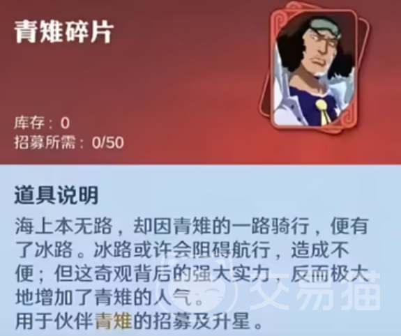 航海王壮志雄心青雉是即将要在4月登场的红色限定伙伴,他拥有冰冻之果的能力,能冰封大海冻结一切,虽然给人感觉看似漫不经心,但却有着独特的正义观,由于是还未上线的新角色,所以不少玩家对他并不了解,那么为了帮助大家了解,下面就来介绍一下青雉,感兴趣的不要错过。