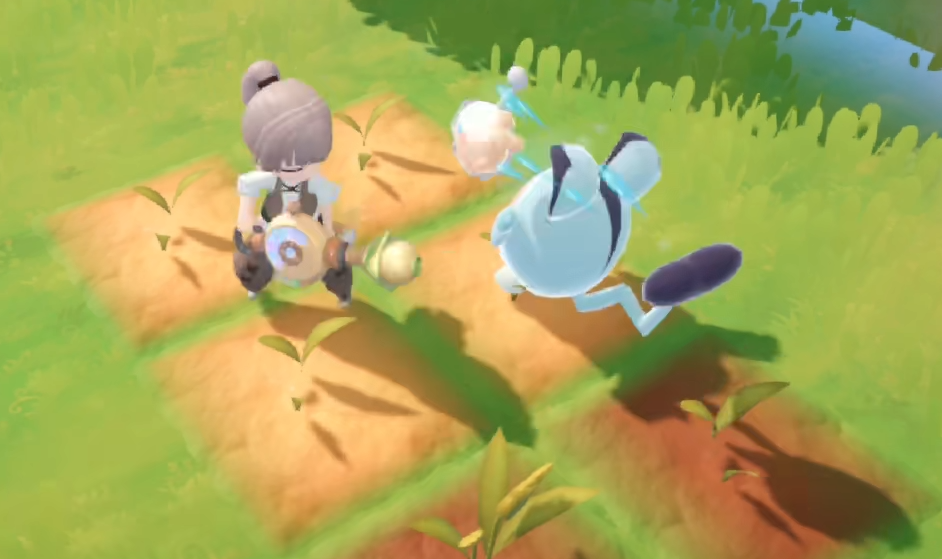 咱们需要开垦出6块土地。咱们尽量按照正方形来进行开垦,这样咱们在进行浇水的时候也会方便一点。在开垦完毕之后咱们需要和旁边的浇水米姆进行对话,之后将其安排进入工作站,之后便可以让它帮助我们对土地来进行浇水了。在浇水之前咱们首先需要进行播种,这里可以使用播种器来对土地进行播种,前期的种子咱们选择星星小麦种子即可。在完成后浇水米姆便会给我们进行浇水。