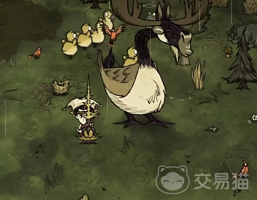 在冬天之后便是春天,而春天的BOSS便是麋鹿鹅还有它的幼崽。这个BOSS的幼崽在攻击的时候是不会长大的。在到了春天之后,咱们在地图上会经常看到有一个被树枝所围住的一圈的图案,这个便是鸟类的巢穴。咱们在地图之中有着一半的巢穴会有着很高的几率会刷新麋鹿鹅。在刷新了之后大概小半天它就会下蛋。在下蛋之后大概2天后便会顺利孵化,一般一个蛋一次可以孵化大概5只幼崽。咱们如果等不及孵化的话,也可以使用锤子将其给敲开,在敲的时候主要防电。