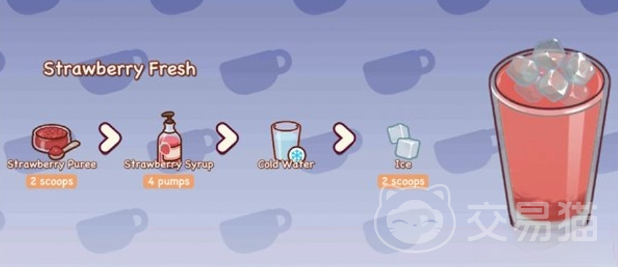 鲜草莓饮品是一款以草莓为主角的清爽饮品,在游戏中,玩家需要将2勺草莓酱、4泵草莓糖浆、2勺冰块与适量的冰水混合,制作出13毫升的鲜草莓饮品。