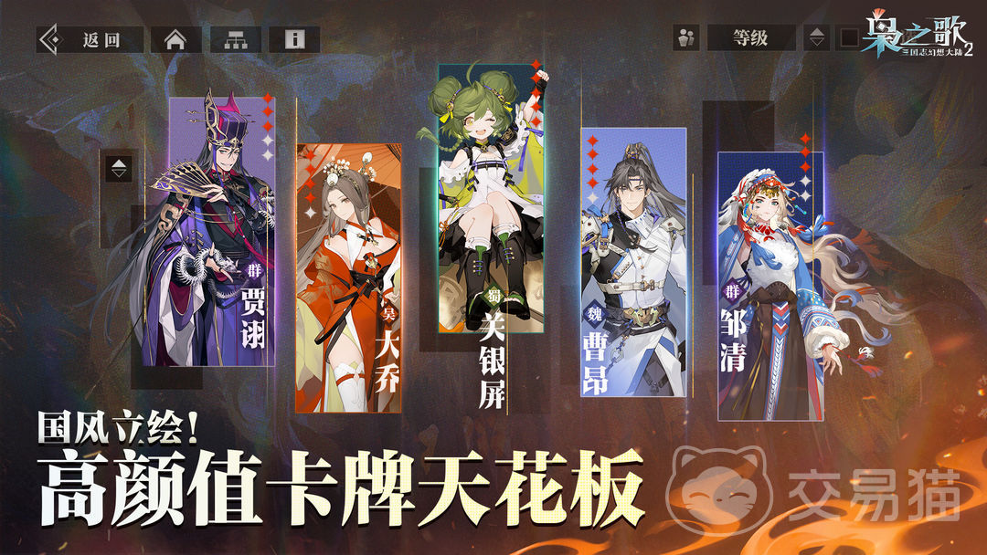 美术风格方面,三国志幻想大陆2:枭之歌延续了“硬派二次元”与“新国风浪漫主义”相结合的独特视觉表现。游戏中的人物造型既保留了三国武将的英武气质,又融入了精致细腻的国风元素,使角色形象更具辨识度。当战场烽烟四起,武将们在刀光剑影间交锋,画面呈现出的磅礴气势令人热血沸腾,而静谧的城池、月下的竹林等场景,又渲染出别具韵味的古风意境。