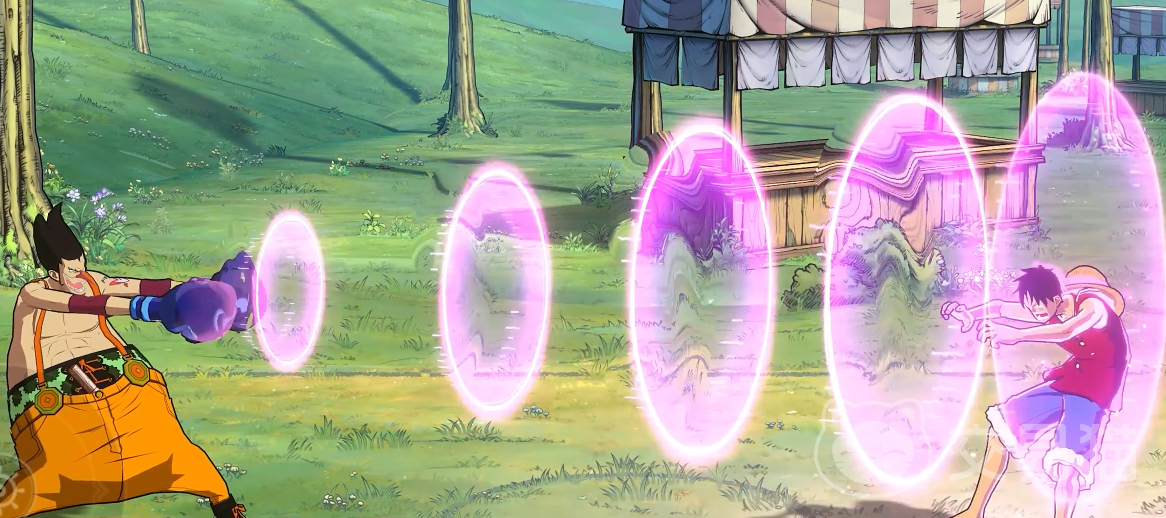 他的一技能会抬起手臂向前快速移动,移动期间可以通过摇杆控制方向,最后使用直拳攻击对手,大家在移动时点普攻还能提前释放直拳,攻击过程可闪避飞行道具,如果使用技能1时,自身靠近被减速的场外大炮该技能效果会变成召唤飞行狐,自身跳上去画面滑行,最后后跳让其撞击对手。