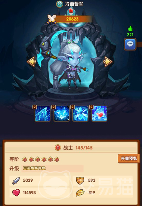 如果大家玩到后期的话,肯定要选一些后期输出不会乏力的角色。这里推荐大家用邪灵术士+黑锋骑士+寒冰箭手+嗜血剑圣阵容,黑锋骑士可以附加黑暗buff,以此增加伤害。邪灵术士就可以回血,后两个英雄就可以在后期补充伤害,是个越战越勇的存在。