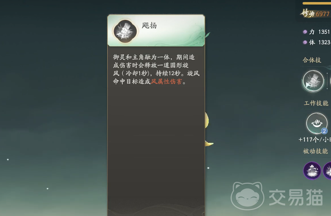 当玩家装备了风灵之后可以解锁全新的合体技能。在玩家使用合体技能后将会召唤出一道旋风对附近的敌人造成非常高的aoe风系伤害,当玩家使用雷系技能后还可以造成连锁反应,在清理杂兵的时候非常好用。