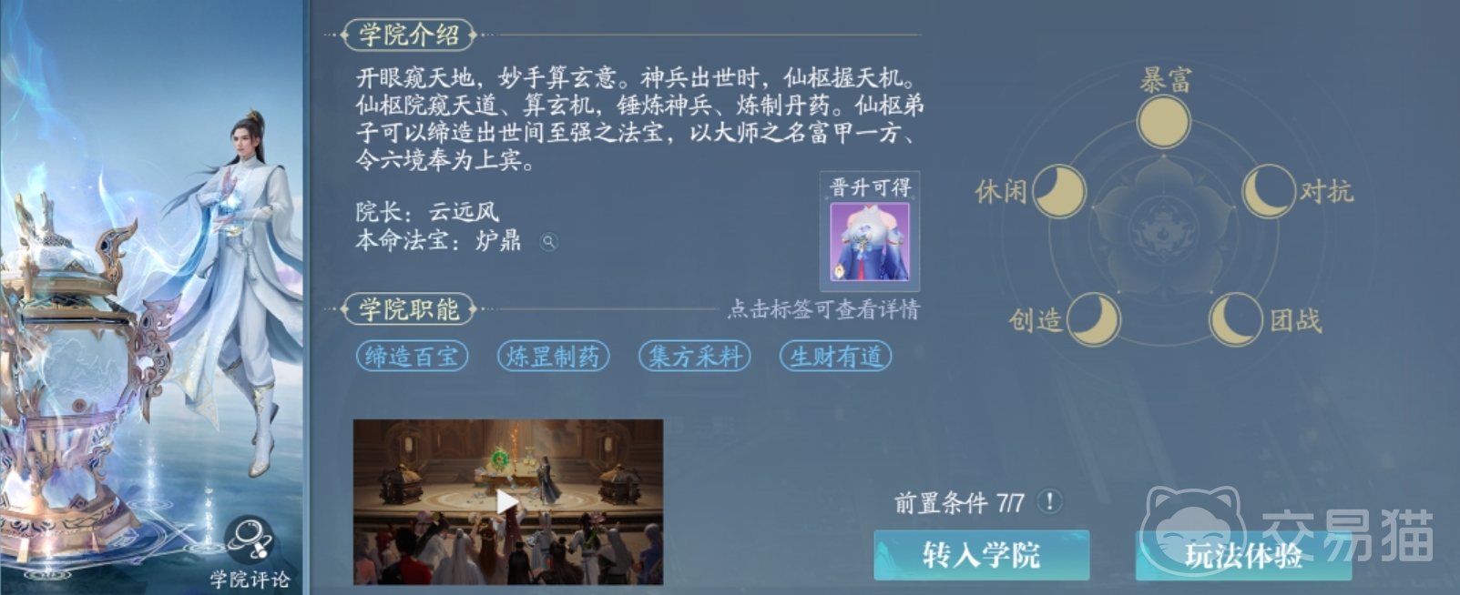 游戏中有三个学院:仙羽院、仙枢院和仙修院,分别负责时装设计、法宝锻造和战斗训练。在此次测试中,玩家可以体验到三线融和的玩法,能够同时参与这三个不同学院的活动,更快速地发现自己喜欢和擅长的领域。