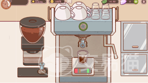 等到制作完成之后,直接把小碗放入到咖啡机,此时就会进入到下一个环节的制作中。游戏的界面还会出现一个很明显的进度条,如果进度条进入到绿色的区域,则意味着已经制作完浓缩咖啡液。接下来玩家只需要把浓缩咖啡液放入到杯子中即可。