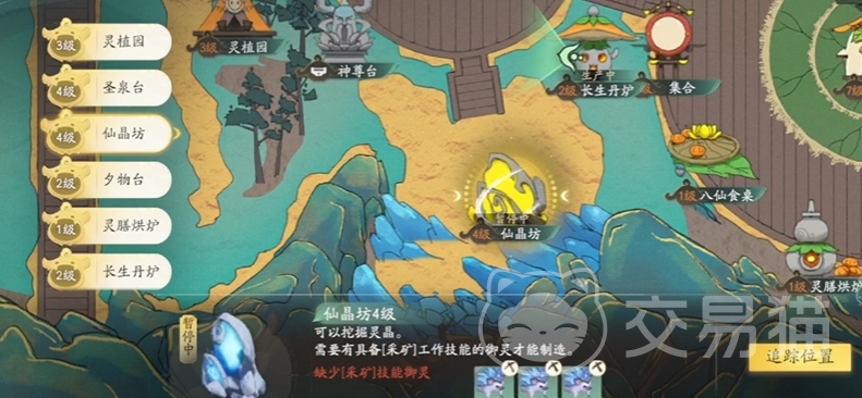 仙晶坊产出流光矿等矿石,可用于炼制丹药,虎啸风、飞岩鼠等御灵能提高其生产效率,矿石作为炼丹重要材料,保障了角色在战斗中的药品供应。