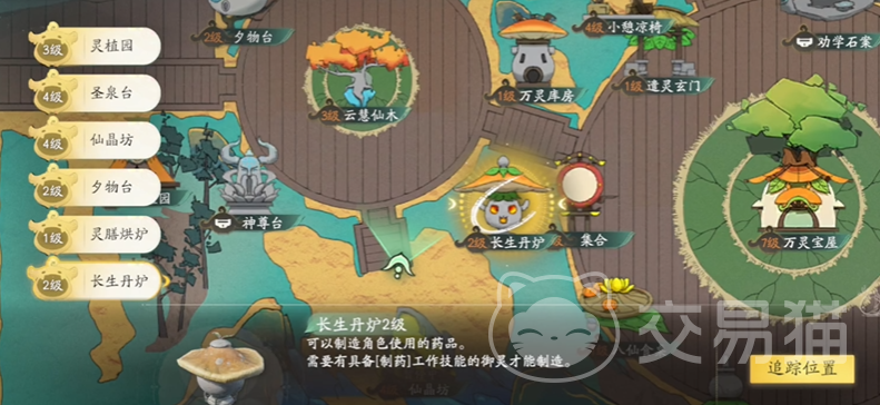 生产类建筑多样,云慧仙木需要完成引导任务后激活,产出的云慧灵果能提升主角经验,不过在游戏前期,资源有限,不必急于追求其产出,以免造成资源浪费,随着游戏推进,其稳定的经验产出能助力玩家快速升级,灵植园同样完成引导任务后解锁,可产出浮灵草、松灵草等多种仙草,这里推荐入驻嫣叱罗、苦草精等御灵,它们能提升生产效率,产出的仙草可用于炼丹、完成任务等,是重要的资源获取途径,圣泉台激活后产出云心灵泉等,用于在万灵福地制造灵葫,狼顾鹰、南瓜卫士等御灵在此能发挥专长,提升产出效率,而高品质灵葫对捕捉强力御灵至关重要。
