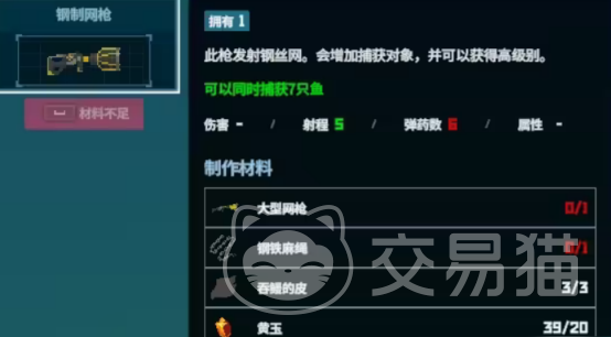首先小编要介绍的第1种方式,那就是通过收集材料的方式到商店中购买,因为在制作钢制网枪时,需要三张吞鳗的皮,这种材料相对来说比较稀缺。因此玩家要在偌大的海洋当中率先捕捉吞鳗,完成这项任务之后,就能收集大量的材料,也可利用这些材料到商店当中进行购买。