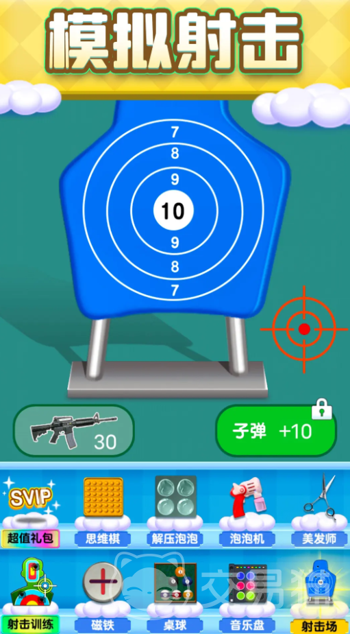 小伙伴们在游戏中可以选择自己感兴趣的解压游戏来进行体验,比如说如果你平时比较喜欢射击类型的玩法,那么这里的设计训练你一定会感到非常满意。小伙伴们在游戏内一共可以打出30发子弹,并且特效也是做的相当不错,小伙伴们在打出子弹之后,能够体验到强烈的打击感与后坐力,来这里练习自己的射击精准度也是很不错的选择哦。