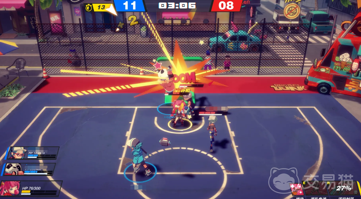 游戏的赛场定位繁多,但是可供玩家上场的人数只有三个,这三个角色分别需要搭配一个前排角色,用于阻拦敌方的过球,其他两个角色需要具备有灵活性,从而用于传球和扣篮。
