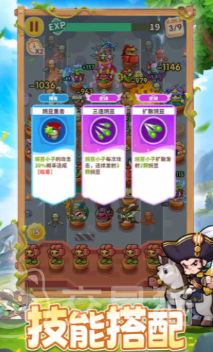 为了可以保住自己的家园,首先玩家需要选择能提供能量来源的向日葵放置到房顶上,然后在下方的院落里放置一些植物用来抵抗僵尸,就比如游戏里会有土豆这种植物,他们会起到护盾的作用,可以在短时间内抵抗僵尸的进攻,豌豆在游戏里会变成射手战士的形象,只要前方有僵尸,就会不断吐出豌豆攻击。