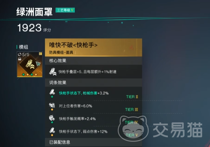 暴击流一半是戴“孤狼套”,4孤狼+1堡垒,外加专属装备“绿洲面罩”获得额外的快枪手层数。弱点流则是4叛客+1堡垒。模组方面,武器上面已经提过了,其他模组方面暴击流:唯快不破、火力追击、快速返场、暴击强化、掩护备战/尖峰时刻。弱点流:精准打击、弹药黑洞、掩护备战、精准打击。