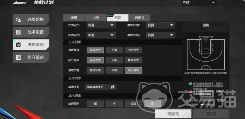 除了通用模式和内线模式等常见选择外,还有多种特色鲜明的进攻策略值得使用,其中侧翼进攻策略备受推崇,尤其适用于那些拥有具备奉献精神的内外线得分手的球队,侧翼进攻策略属于经典的灵活多变的进攻战术,它的核心在于利用球员之间的球灵跑动和精准传导,创造出流畅的进攻节奏,这种战术并非简单地依赖某一位球员的个人能力,而是通过整个团队的协作来打破对手的防线。
