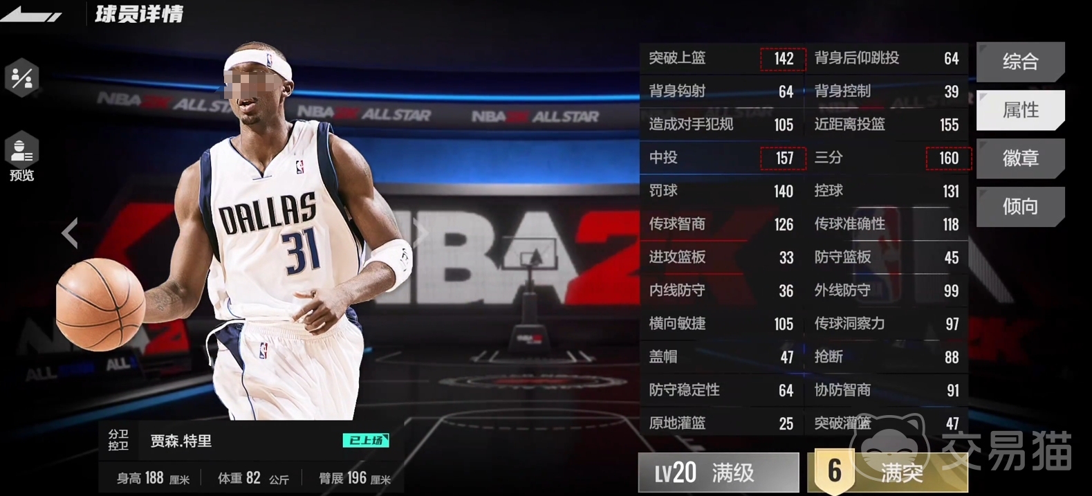 而36的内防属性更是几乎可以忽略不计,在内线防守上,他很难对对手的高大中锋形成有效的限制,不过这也可以理解,毕竟他的主要价值在于将进攻能力拉满,贾森特里在徽章方面也有不少亮点,他的徽章进一步加成了他的进攻能力,例如一些与三分球相关的徽章,让他在三分线外的威胁更加恐怖,这些徽章的存在,使得他在进攻端的手段更加丰富。