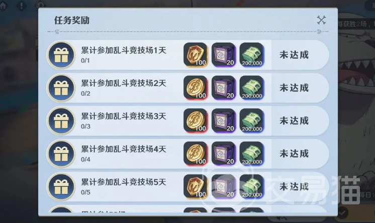 参与乱斗竞技场不仅可以享受酣畅淋漓的战斗,更是有机会获得竞技币、金币等一系列的奖励,并且可以推进竞技任务,每天至少获得2场胜利,就可以加1个竞技任务本周胜场。