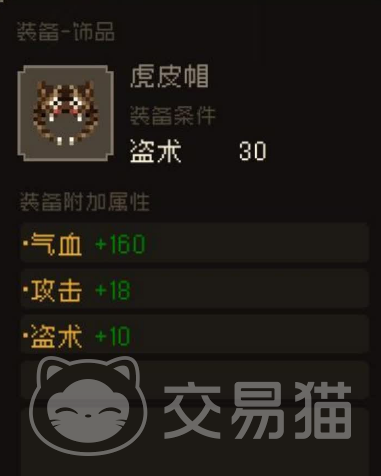 虎皮帽的穿戴和获取对于玩家同样是有一些属性要求的,主要的要求就是要大家拥有30点盗术,这是属于独特的一个属性,这种属性对于玩偷盗的流派相对来说更好获得,而想要提升对应的属性数值,可以通过去完成相关任务来获取。