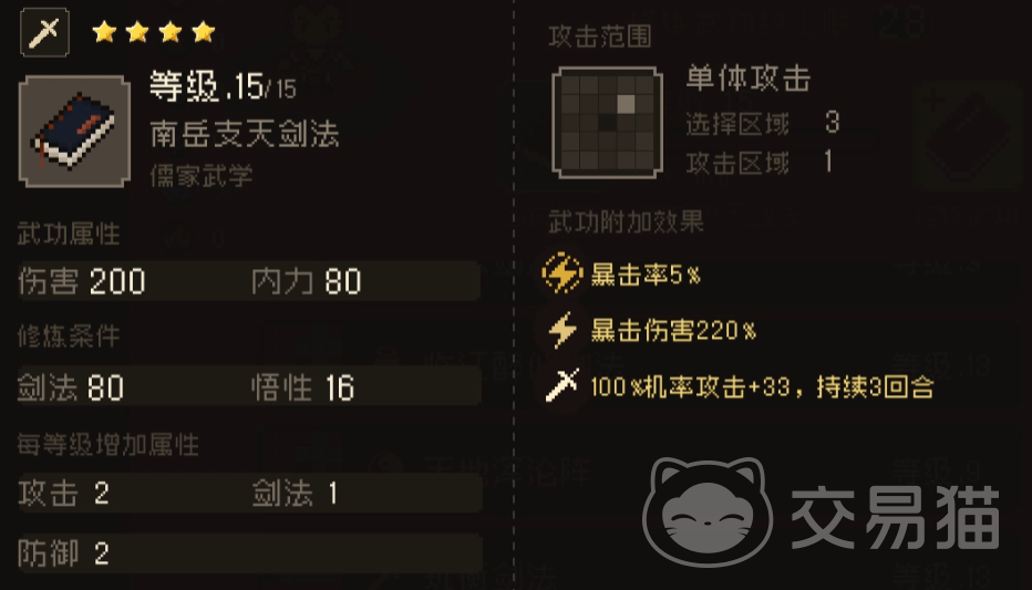 南岳支天剑法由衡山师兄在岳麓琴会上教授,能提升攻击力;