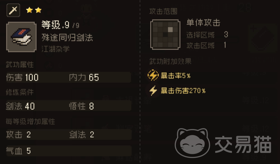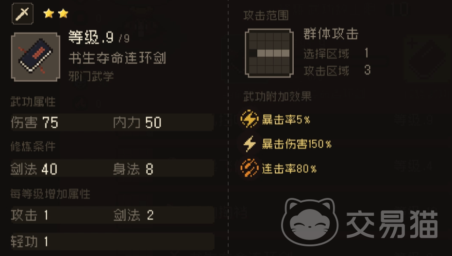 一苇渡江剑法适合独行者,伤害翻倍,可在道德低于4时拜师北孤获得;