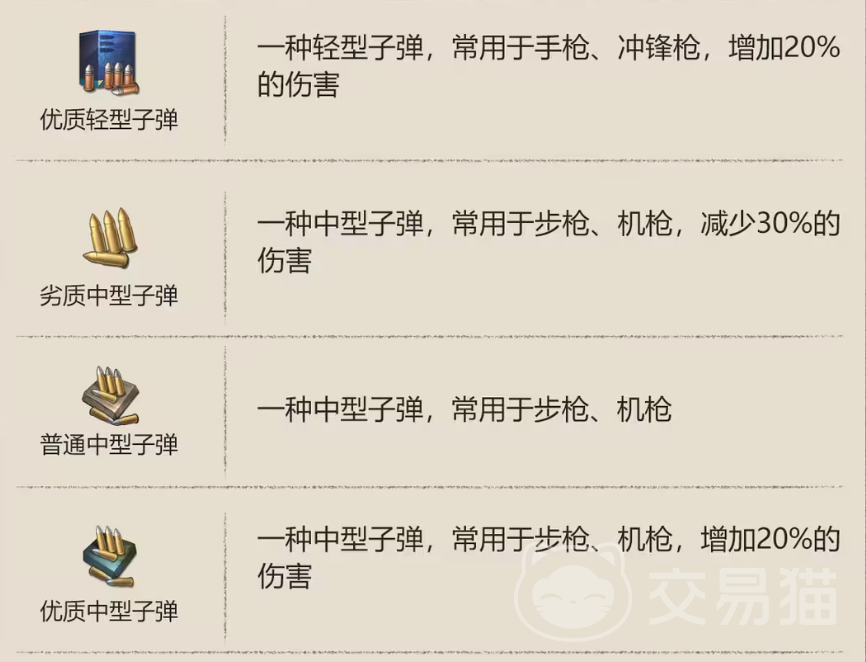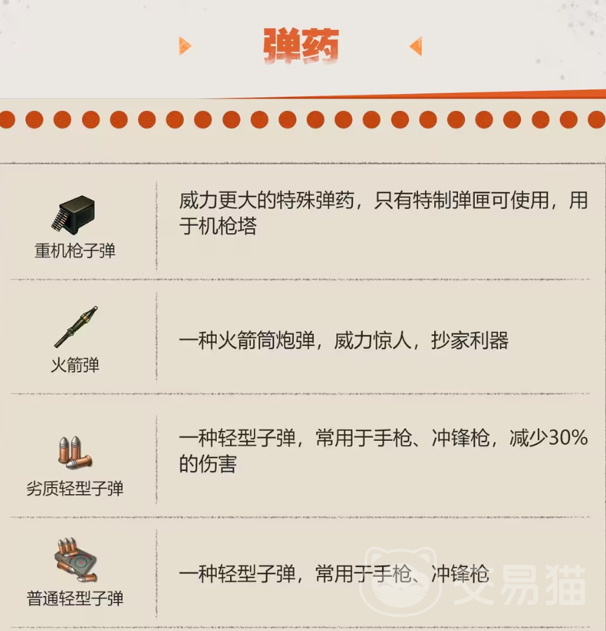 先介绍一些常规的弹药,要说常规的弹药其实就是一些枪械里面所使用到的子弹,这里包括轻型步枪弹药,重型步枪弹药,手枪弹药,榴弹弹药等等。要说这些枪械其实可以对抗各种各样的敌人,在战斗的时候,弹药消耗的是特别快的,所以玩家在体验游戏的时候也需要尽可能的是获得弹药。