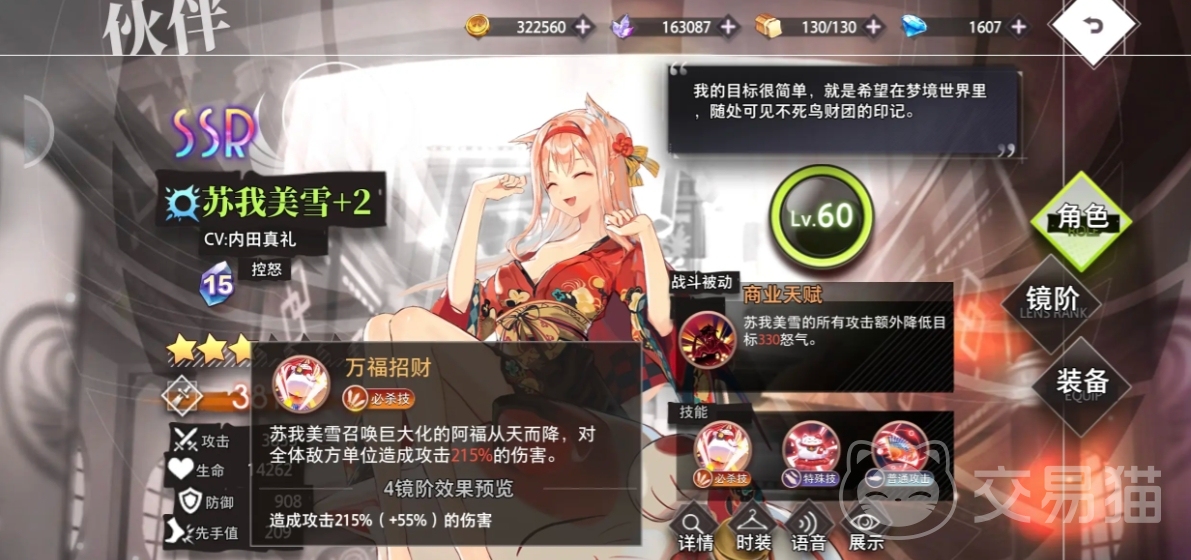 苏我美雪是一种增益合作方,能够作为辅助角色,也可作为副C,技能能够降低对手的怒气,有效限制敌人伤害输出,这在早期的开荒阶段尤为有效。美雪的诞生能够为队友提供更好的输出环境,提升作战的胜算。对新手而言,这是一个不错的选择,不仅可以帮助玩家顺利度过前期开荒阶段,并且在后期的作战中发挥重要作用。