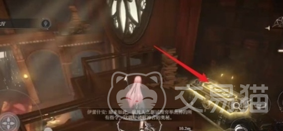 1-12任务的宝箱位置较为特殊,玩家需要从图中位置前往箭头处的光点,然后从右边的楼梯上去。右转后,玩家会看到一个光点,点击查看信件后,宝箱12就会出现在附近。