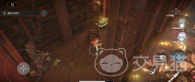1-14任务的宝箱位置较为复杂,玩家需要从图中位置沿着箭头方向前进,上楼梯后使用过载技能破坏带有裂痕的物体。继续往右走,在尽头处会看到一个宝箱。拿到宝箱后,从旁边的楼梯下去,前往箭头处的新地点。继续前进并上楼梯,站在地块会向下移动的位置,下来后与书架旁的光点进行交互,即可获得宝箱。