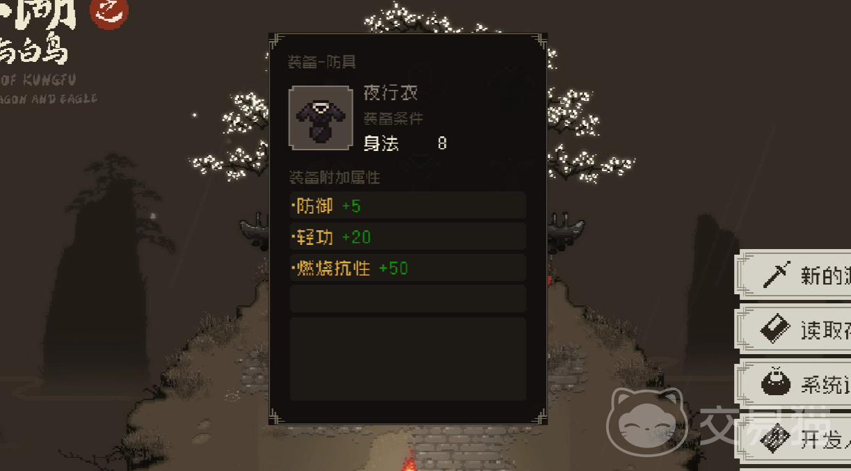 夜行衣在游戏当中的效果是,有五点的防御,和20点轻功加成,队盗贼流派而言,是最好的套装,玩家直接偷窃白无常身上的道具,都能够获取了,但是玩家的盗窃属性值必须达到六十点以上,才能够有概率偷窃成功哦。