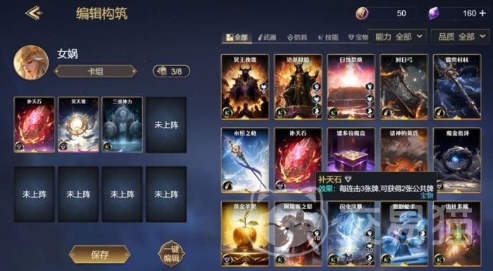 神灵专属技能卡牌则根据神灵的特点设计,例如阿波罗的潜影蛇手、海拉的死亡之触和荷鲁斯的鹰眼,这些技能卡牌与神灵的属性高度契合,能够发挥出最大的战斗效果。例如,孙悟空的技能卡牌火眼金睛可以窃取对手的技能,因此不需要携带潜影蛇手。