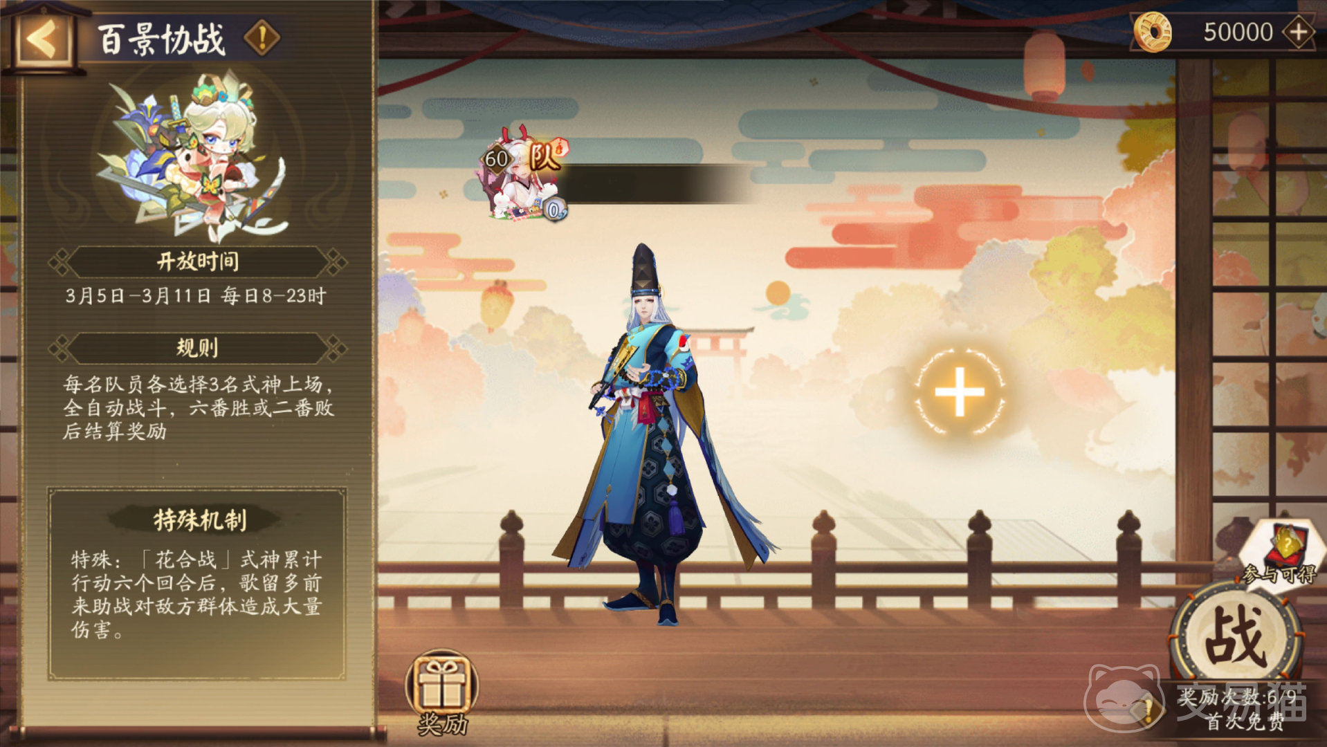 进入活动的方式便捷多样,只需轻轻点击地藏像上醒目的活动横幅,亦或是庭院右上角那俏皮可爱的小纸人,便能瞬间穿越至活动专属界面,投身到花札的奇妙世界之中,在活动期间,每日8:00至23:00这段时间里大家可踊跃投身于百景协战之中,当进入式神选择环节时,其间会不定时出现特殊的花合战式神,这些式神仿若受到了花之精灵的特殊眷顾,周身散发着神秘的气息,歌留多的祝福的神奇力量一旦激活,可以帮助玩家及其队友更为顺遂地迈向胜利彼岸。