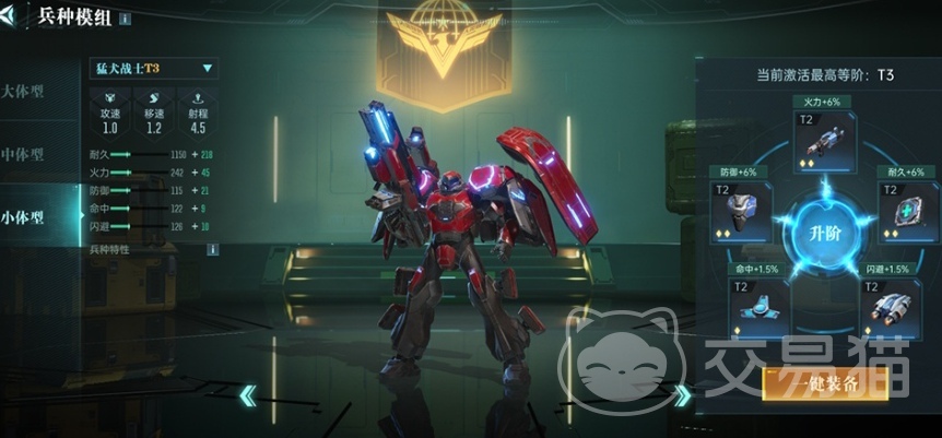 提高他们的能力不断的强化,如果大家已经收集了五个部件,全部升级之后,都可以来升阶兵种,激发T级的兵种,游戏中的机甲部件也是非常多的,大部分都可以用在兵种装备上面,包括大中小三个不同的类型,一共有五个可以安装的部件,不同的部件所对应的属性加成也是不一样的,如果大家五个部位均穿戴了高级的T级装备,并且它的级别与别的兵种相同,可以来消耗这个部件,来更好的进行升级的操作。