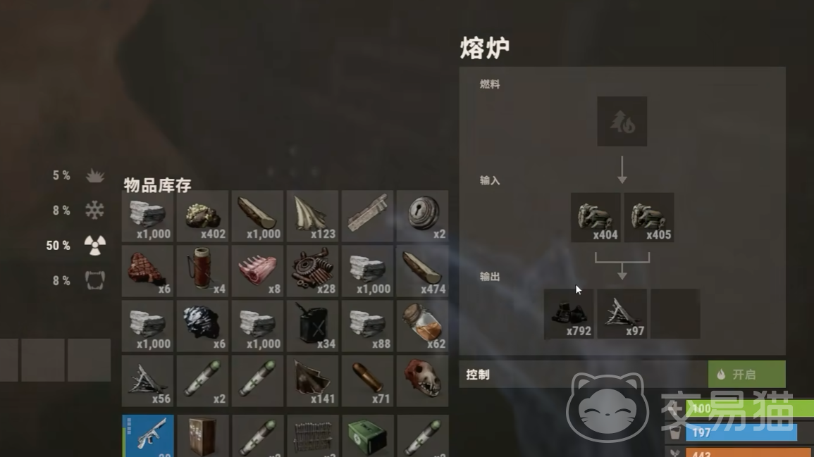 在建筑方面,合成的内容需求量就比较大了,例如熔炉,希望玩家消耗两百颗石头,以及五十片金属碎片,才能够搭建完成。