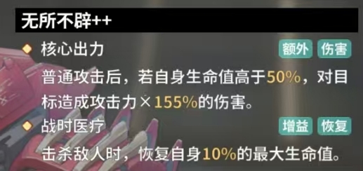 这位在战场上以无所不辟技能纵横的角色,其核心出力技能令人叹为观止,每当他完成一次普通攻击,若自身生命值高于70%,便能对目标造成攻击力*95%的惊人伤害,这一技能不仅展现了他的攻击力,更透露出他对战斗节奏的精准把控,而战时医疗技能的加入,更是让铃木清风在战场上如鱼得水,每当他成功击杀一名敌人,便能立即恢复自身10%的最大生命值,这一效果让他在激战中能够保持持久的战斗力,成为战场上的不死之身。