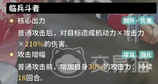 铃木清风的那招临兵斗者技能,是能对目标造成机动力攻击力130%的毁灭性伤害,让对手毫无还手之力,带来的攻击增幅技能,更是将他的战斗能力提升到了一个新的高度,在普通攻击前,他能瞬间增加自身30%的攻击力,这一增幅效果不仅能让他在接下来的18回合中保持高昂的战斗力,更能在关键时刻爆发出惊人的杀伤力,当铃木清风解锁核心出力技能后,他的战斗能力更是达到了巅峰,这一技能让他的普通攻击伤害再次提升,达到了机动力攻击力210%的恐怖水平。