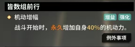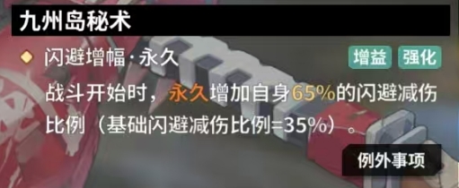 当铃木清风解锁九州秘术技能后,他的战斗能力再次得到了质的飞跃,此时他的核心出力技能变得更加强大,普通攻击后若自身生命值高于50%,便能对目标造成攻击力*155%的伤害,同时闪避增幅永久技能的觉醒,更是让铃木清风在战场上难以捉摸,战斗开始时他就可以永久增加自身42.5%的闪避减伤比例,这一比例随着技能的升级还能进一步提升至65%,让他在战场上能够轻松躲避敌人的攻击保护自己。