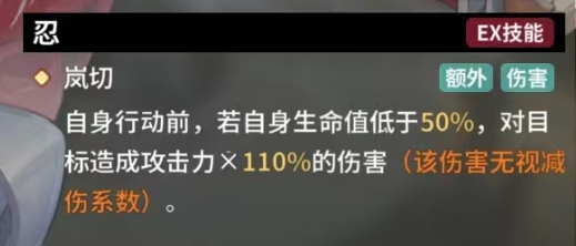而EX技能忍的加入,更是让铃木清风在战场上的策略性达到了新的高度,每当他行动前,若自身生命值低于50%,便能对目标造成攻击力提升数值乘以110%的伤害,且这一伤害无视减伤系数,意味着即使敌人拥有再高的防御力,也无法抵挡他的致命一击,值得一提的是铃木清风一般在队伍中扮演着妈妈的角色,她的存在不仅让队伍在战斗中更加稳健,更让每一位队友都感受到了有恢复的优势。
