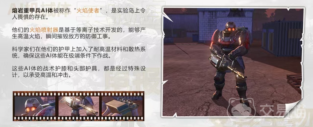 第3个森林狼,采用合金打造身躯,覆盖特殊迷彩涂层,和周围环境融为一体,很难被发现,尾部装备了可以伸缩的弯刀,在短时间内完成攻击,听觉和嗅觉传感器极为发达,能够精准定位目标。第4个熔岩重甲兵,使用火焰喷射器产生高温,将敌方防御工事摧毁,身穿的护甲中加入了耐高温材料和散热系统,能够在极端条件下作战,承受高温和冲击。第5个攻击无人机,采用先进科技制造,能够在复杂环境中作战,拥有强大火力和精准导航系统,不仅能够侦查和打击,还可以帮助收集资源。