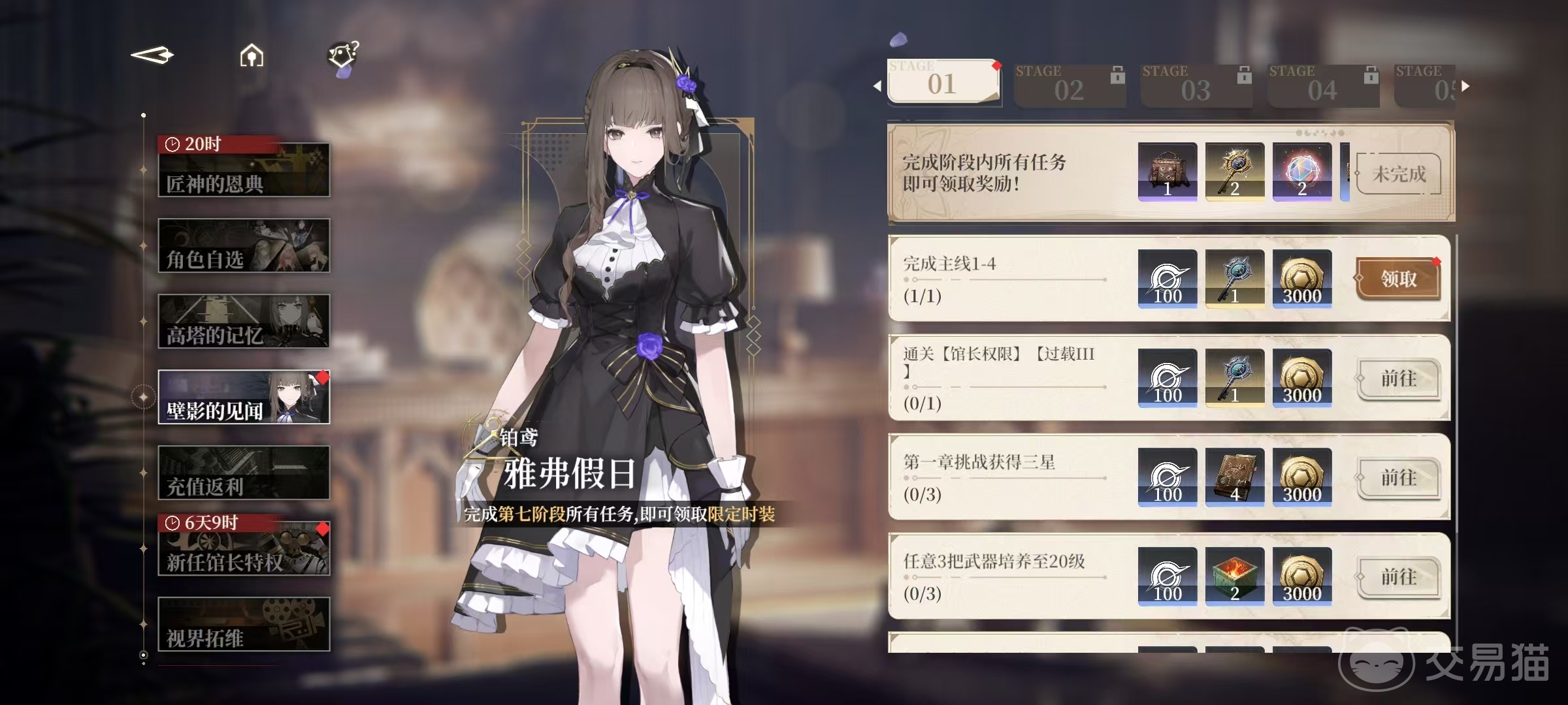 在部分关卡地图中还会散落着一些宝箱等待探索,在关卡的右上角可以直接查看到是否有宝箱,宝箱总数以及当前的探寻进度,这样也有助于玩家掌握当前探索的情况。随着主线推进,对应章节的困难模式也会逐渐解锁,困难模式中所有的都是战斗节点,每个节点都有通关条件,达成之后获得星级评价,喜欢操作的玩家完全可以在困难模式中找到操作感觉。这样的设置就给了玩家不同的游戏乐趣,有些人只喜欢欣赏精彩剧情,而有些就喜欢挑战极限,这些都能符合。除了主线之外还推出了很多挑战以及资源副本,在资源中包括书馆复现、匠神熔炉、奥雷融通等,分别获得对应的材料。挑战中包括角色教学、馆长权限、穷举模式、旧日残影等一系列玩法。大家通关主线越高,解锁玩法也就越多。游戏中商城内容也很齐全,日常礼包,新手特权等,其中有一些是免费赠送的,大家一定要注意点击。