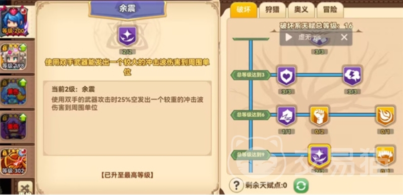 这个天赋的效果非常明显,它能让战士在使用双手武器进行攻击时,有25%的几率空发出一个较重的冲击波,并对周围的单位造成伤害,而且余震天赋后续还可以进一步提升战士的生存能力,除了输出和爆发伤害,战士的生存能力也是至关重要的,因此大家还需要将冒险天赋加点至高级勇者,高级勇者这个天赋可以让战士的所有技能耐性增加100,这意味着战士在面对敌人的攻击时,能减少所受到的伤害,同时高级勇者还能提升战士在战斗中的生存能力。