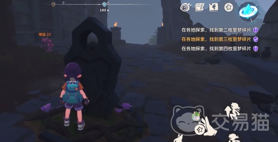 第一个碎片位置:这个碎片位置在信仰者村落,玩家可以通过传送点知道到达。到达后在地图上会看到明显的标识,跟着标识走就能找到碎片了,不过想要取得碎片的话还要战胜守护碎片碎片的精灵。精灵对战难度不高,成功击杀后在附近找到石碑,并点亮上面的星星就能获得碎片1了。