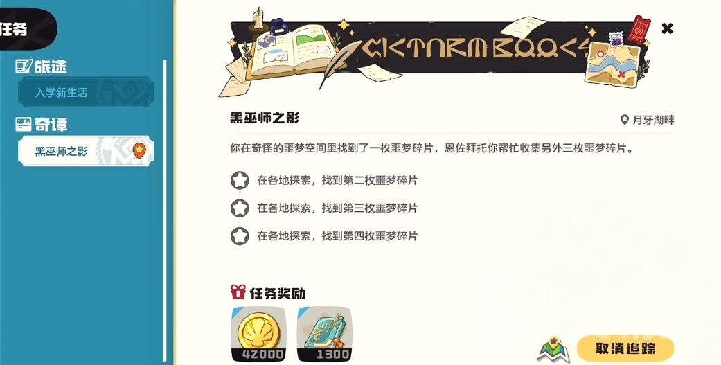 这个任务其实是和一个叫“黑巫师”的NPC有关,想要领取这个任务也是需要玩家和他对话后才能开启,这个任务的难度不高,主要是想要玩家们找到3个关键碎片道具,三个道具遗落的位置比较分散,但好在领取任务后会在地图上有所标注,能帮助玩家快速找到它们的位置。