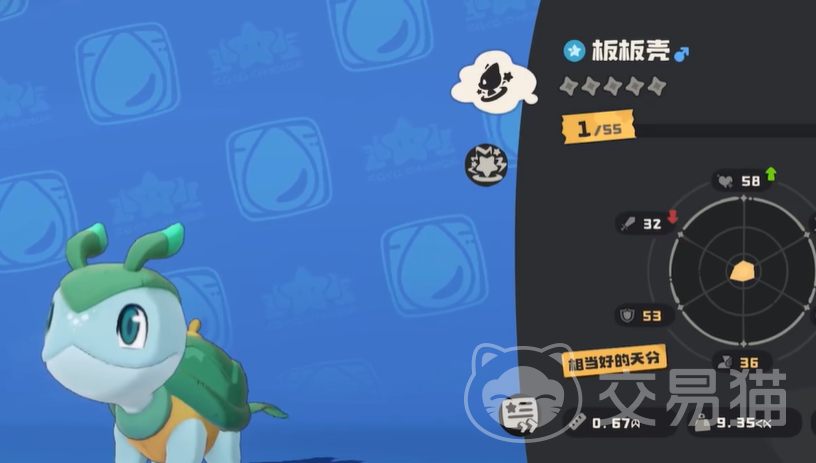 技能方面在初始阶段就拥有一个加护盾技能,但是没什么输出能力,需要通过后续升级才能解锁相关的水属性技能,在前期刷图还是有一些墨迹的,可以通过经验果实将板板壳进化,就拥有一定输出,他还拥有一个指定技能,该技能叫做龟兔赛跑,是一个百分百先手的水属性技能,面对兔子类型的经理会打出更高的输出,算是弥补了他速度比较慢的缺点。